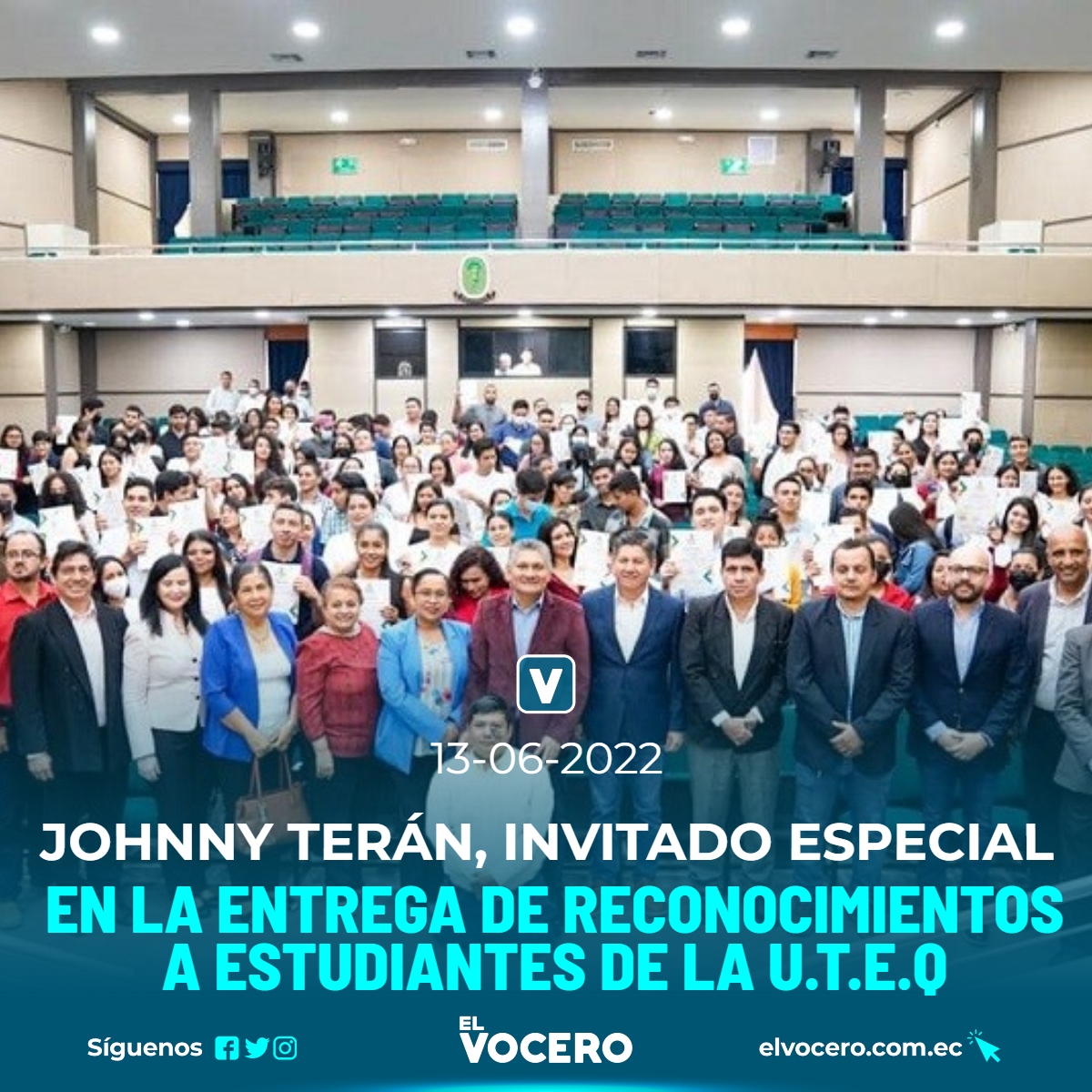 Atendiendo la cordial invitación del rector de la Universidad Técnica Estatal de Quevedo, (U.T.E.Q.), doctor Eduardo Díaz Ocampo, PhD., el prefecto de Los Ríos, Johnny Terán Salcedo, formó parte de la mesa principal en la ceremonia de entrega de 319 reconocimientos a igual número de alumnos que cursan sus estudios en las ocho facultades, en mención a su excelencia académica, demostrada durante el periodo lectivo 2020 – 2021.