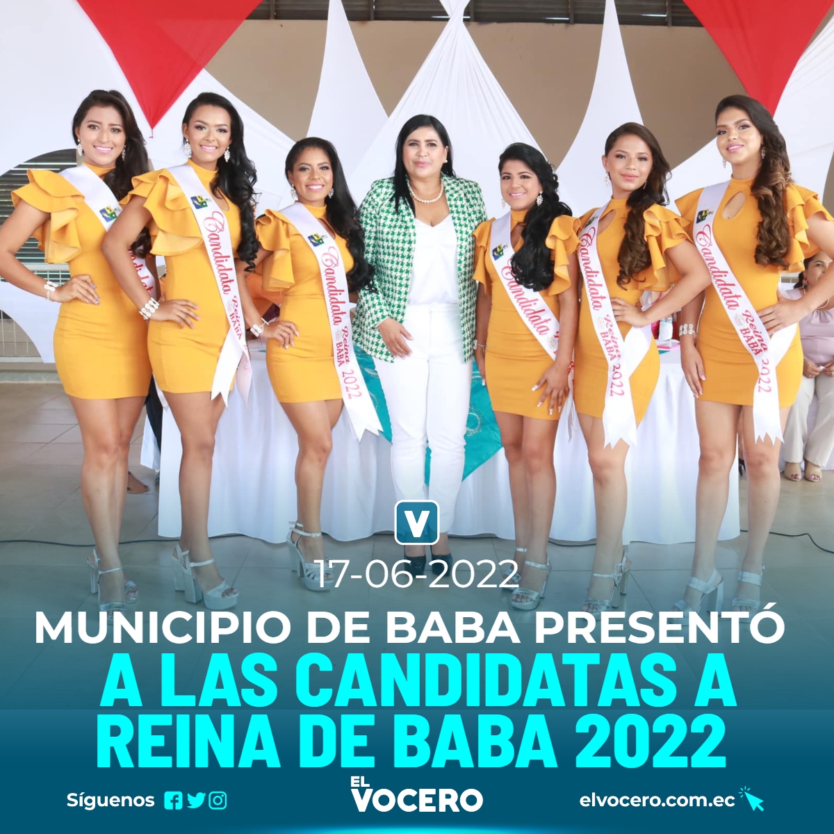 En una tarde de encanto, donaire y belleza, se ha presentado de manera oficial a las representantes de la belleza babense. La Reina de Baba se elegirá el próximo lunes 21 de junio en un evento público que se efectuará en la Av. Guayaquil.
