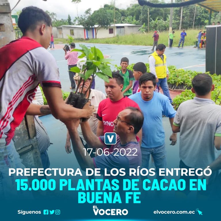 La Prefectura de Los Ríos entregó más de 15 000 plantas de cacao de la variedad CCN51 a 28 agricultores de la asociación campesina Esperanza Viva, ubicada en el recinto Barrio Lindo, perteneciente a la parroquia rural Patricia Pilar.