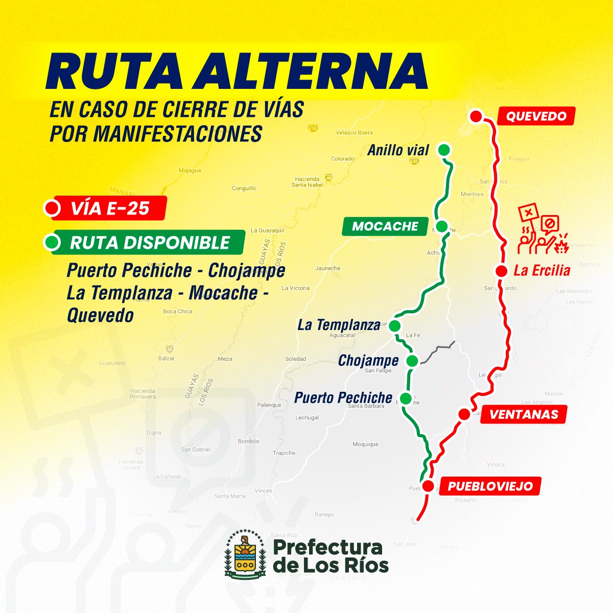 Atención Sugerimos tomar las siguientes vías alternas para el traslado seguro de vehículos. #LaVerdaderaObraesqueVivasbien #PrefecturadeLosRios