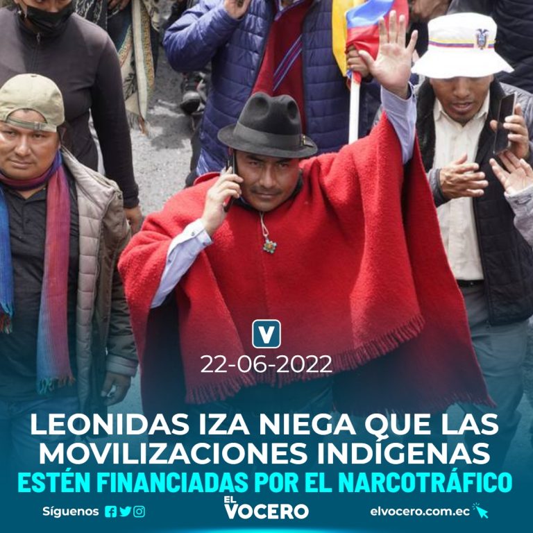 El presidente de la Confederación de Nacionalidades Indígenas del Ecuador (Conaie), Leonidas Iza, calificó como “irresponsables” a las autoridades gubernamentales que han afirmado que el paro nacional indefinido está financiado con recursos del narcotráfico.