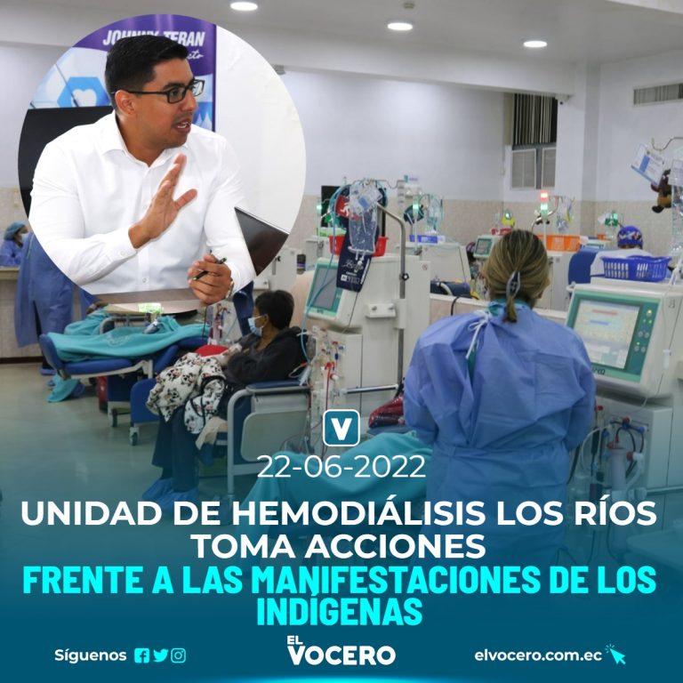 “Así mismo se ha dispuesto tomar las acciones necesarias en cuanto al talento humano, turnos y otras decisiones técnicas las mismas que estarán orientadas en dar contingencia a esta situación”, manifestó Acurio reafirmando que la Unidad de Hemodiálisis de Los Ríos se encuentra firme en su compromiso de dar salud a los usuarios en las unidades de Babahoyo, Vinces y Ventanas.