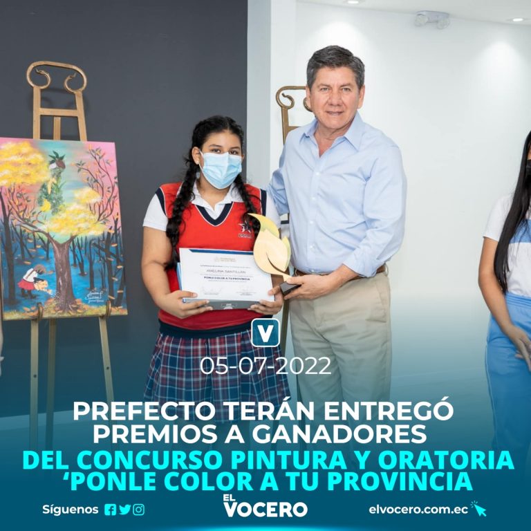 «Felicitamos a Amelina Santillán, de la Unidad Educativa María Andrea; Dayanna Tibán y Amalia Gómez, del Rey David, ganadores de la categoría de pintura. Además de, Daniella Bajaña, de la Unidad Educativa Babahoyo; Paula Bajaña de Segundo Nueva Era de Vinces y Miguel Cardona, de la 10 de Agosto de Montalvo, ganadores de la categoría de Oratoria», detalló el Prefecto Terán.