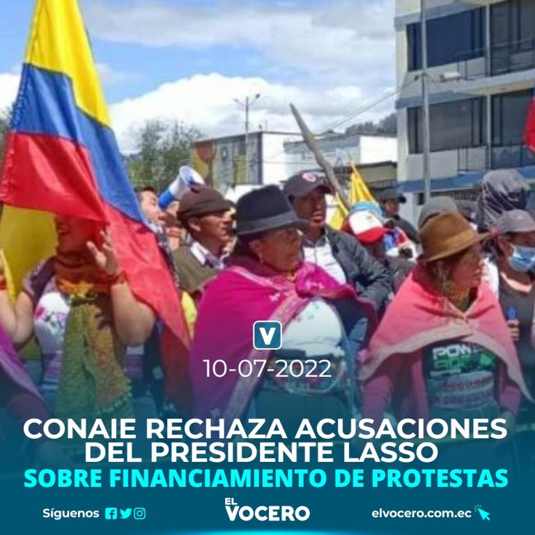 El Consejo de Gobierno de la Conaie emitió un comunicado este sábado 9 de julio de 2022 donde rechazan las acusaciones calificadas como «absurdas» del presidente Guillermo Lasso sobre el financiamiento de las protestas sociales.