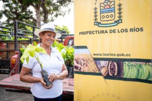 En el recinto Campo Alegre, participé del acto de entrega oficial de más de 30 000 plantas de cacao de la variedad CCN51 y de 4 000 plantas de plátano hartón a 55 pequeños productores que forman parte de varias asociaciones rurales de este cantón.