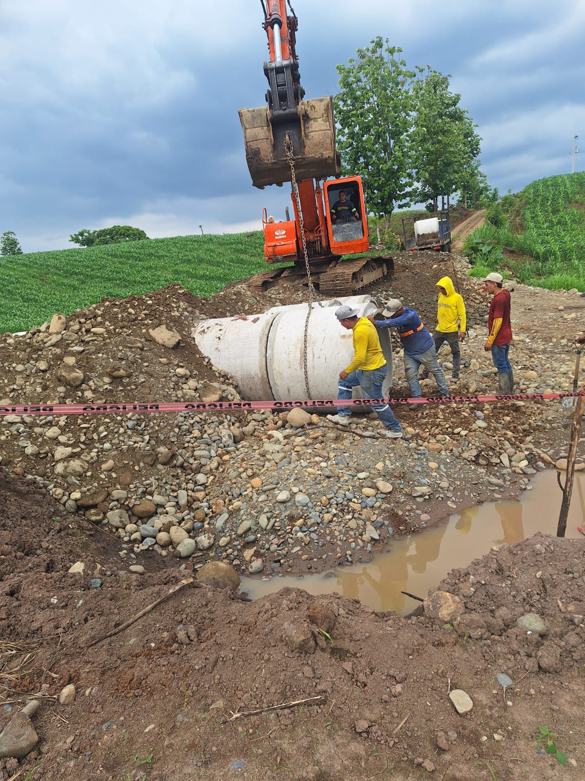 En el sector de Cañaveral de Adentro, perteneciente al cantón Urdaneta, y en El Moral, ubicado en el cantón Ventanas, los equipos de la Prefectura avanzan con la colocación de tuberías para la instalación de alcantarillas triples, una obra fundamental para la gestión de aguas pluviales y el mantenimiento de las vías.